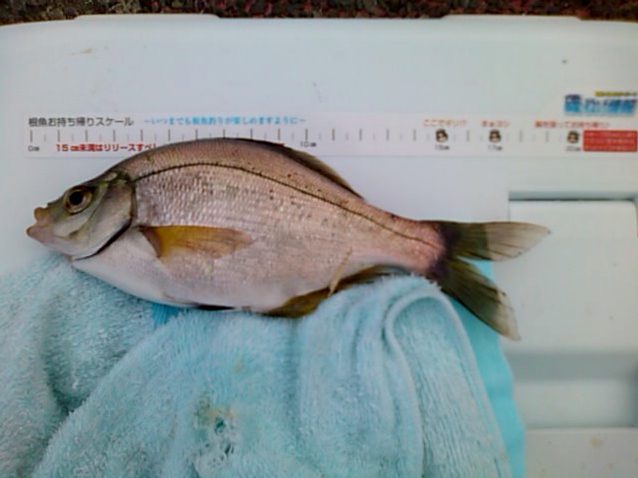 漸くまともに釣れたのは、20cm弱のウミタナゴ。